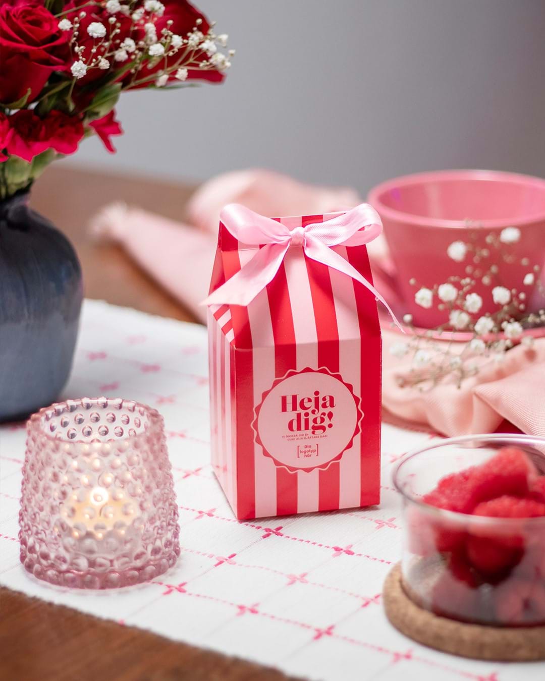 Försluten med en rosa rosett är den lika fin att ge bort som den är att få. Fylld med kvalitetsgodis och en perfekt ”tack för att du finns”-gåva till kollegor, kunder eller samarbetspartners