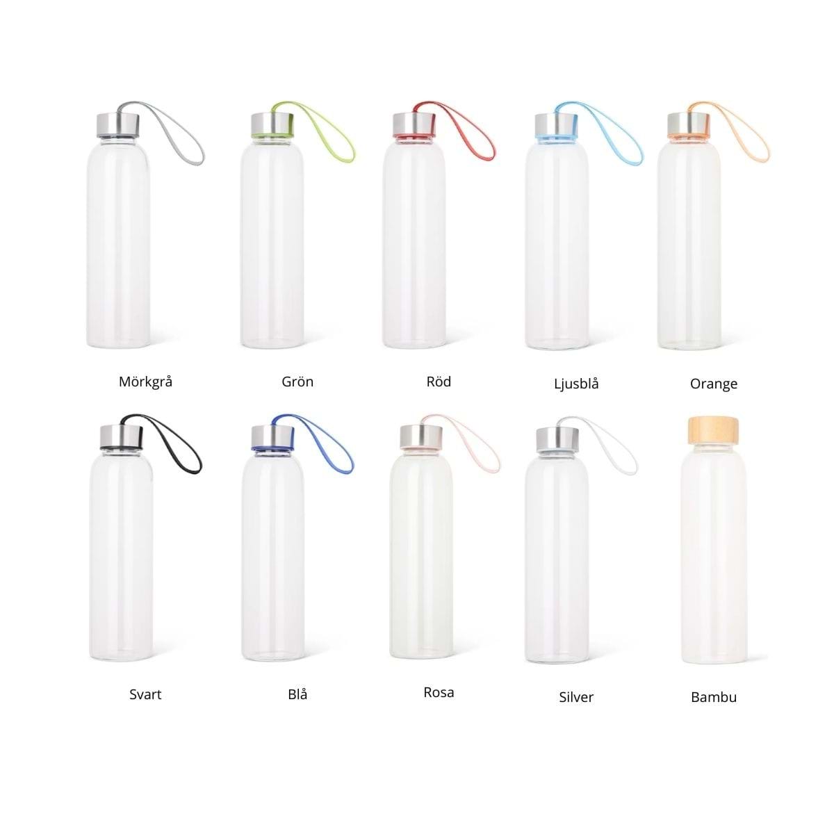 Snygg och praktisk vattenflaska. Livsmedelsgodkänd och tillverkad i hållbart och tåligt borosilikatglas. Perfekt att ha med till gymmet eller på kontoret. Helt återvinningsbar.