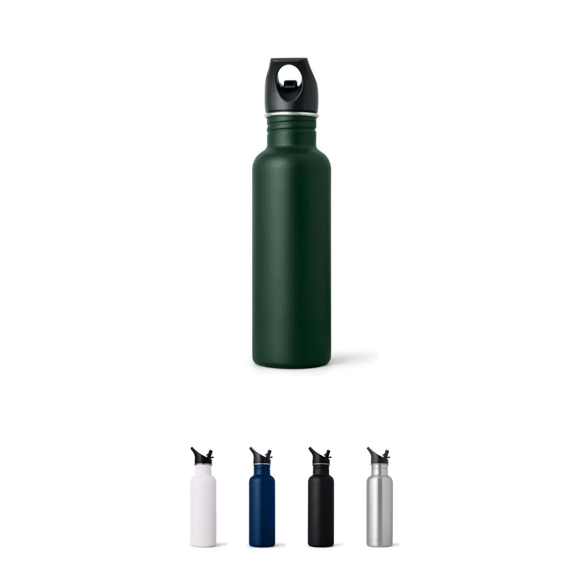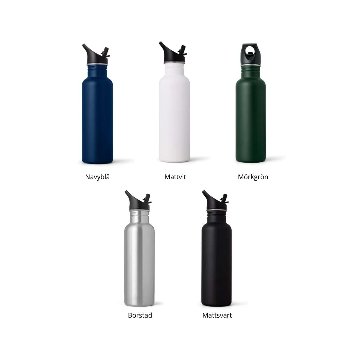 Sportflaska i återvunnet rostfritt 18-8 stål med inbyggt sugrör. Denna flaska är helt fri från skadliga metaller och stålet varken tar eller ger någon smak. Tål kolsyra
