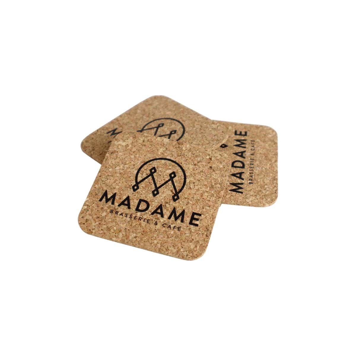 Med ett underlägg i kork skyddar du din bordskiva mot repor och värme. Gravera din logga i mörkbrun ton. Går även digitaltryck på förfrågan.