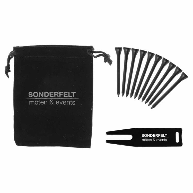 Golfkit 100 innehåller Pouch, 10 neutrala pegs ( finns i fem färger ), samt en Greenlagare GL20