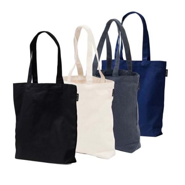 Bomullskasse tillverkad av återvunnen bomull. Tyger från restpartier, stuvbitar och dylikt trådas upp och vävs till nya kassar, istället för att kasseras. En grov 400 grams kasse med ruff känsla som är ett miljömedvetet val till ett riktigt bra pris.