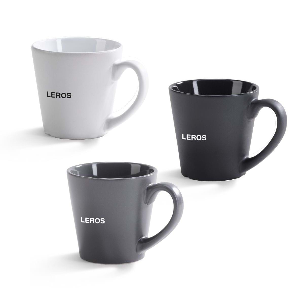En klassisk cafémugg med en bredare öppning. Stengods med matt utsida och blank insida.