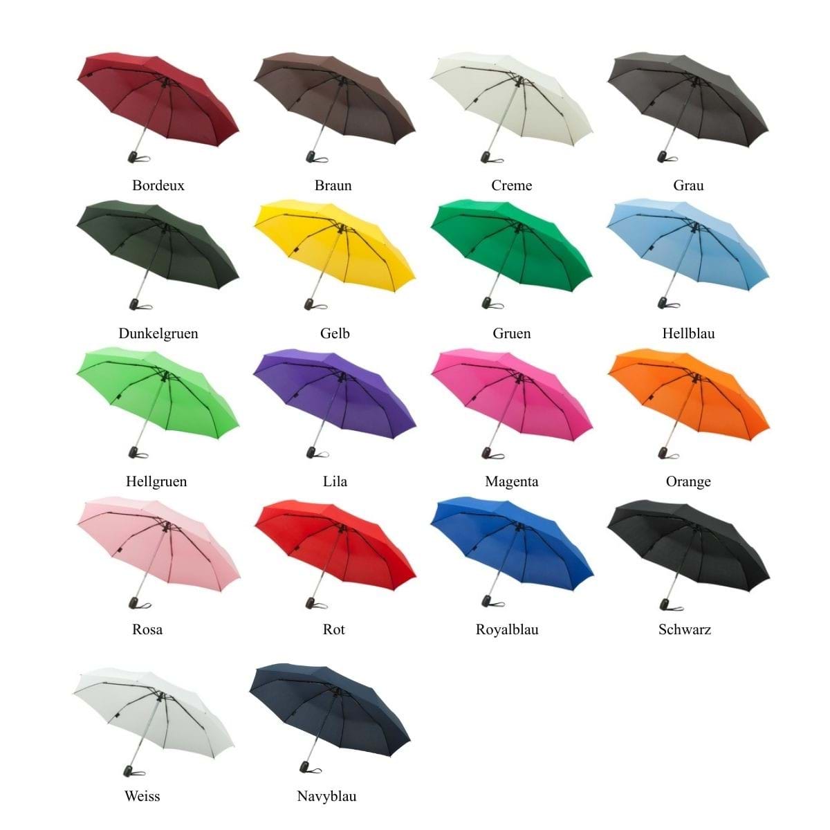 3-sektionsparaply med automatisk uppfällning och stängning. Paraplyet är stormsäkert, vilket innebär att det vänder sig vid kraftig vind. Bra storlek för att bära med sig i handväskan