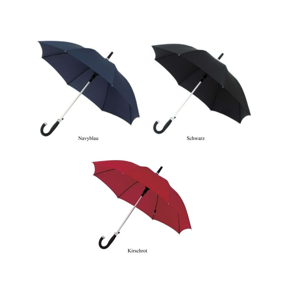Ett paraply i mellanstorlek som står emot regn och stark vind. Praktisk automatiskt öppning och en flexibel glasfiberram med vändbara ekrar för flexibilitet vid starka vindar. Robust aluminiumskaft på 14mm och ett exklusivt böjt krokhandtag.