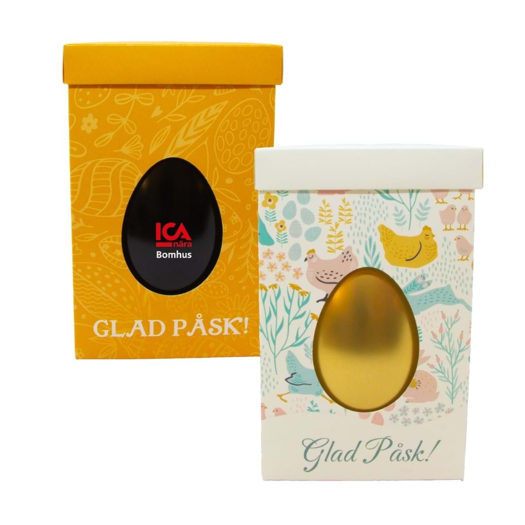 Plåtägget finns i svart eller guld, två tidlösa färgval som ger ett exklusivt och professionellt intryck. Genom att trycka er logotyp direkt på plåtägget skapas en påskgåva som syns, används och lever vidare även efter att godiset är slut.