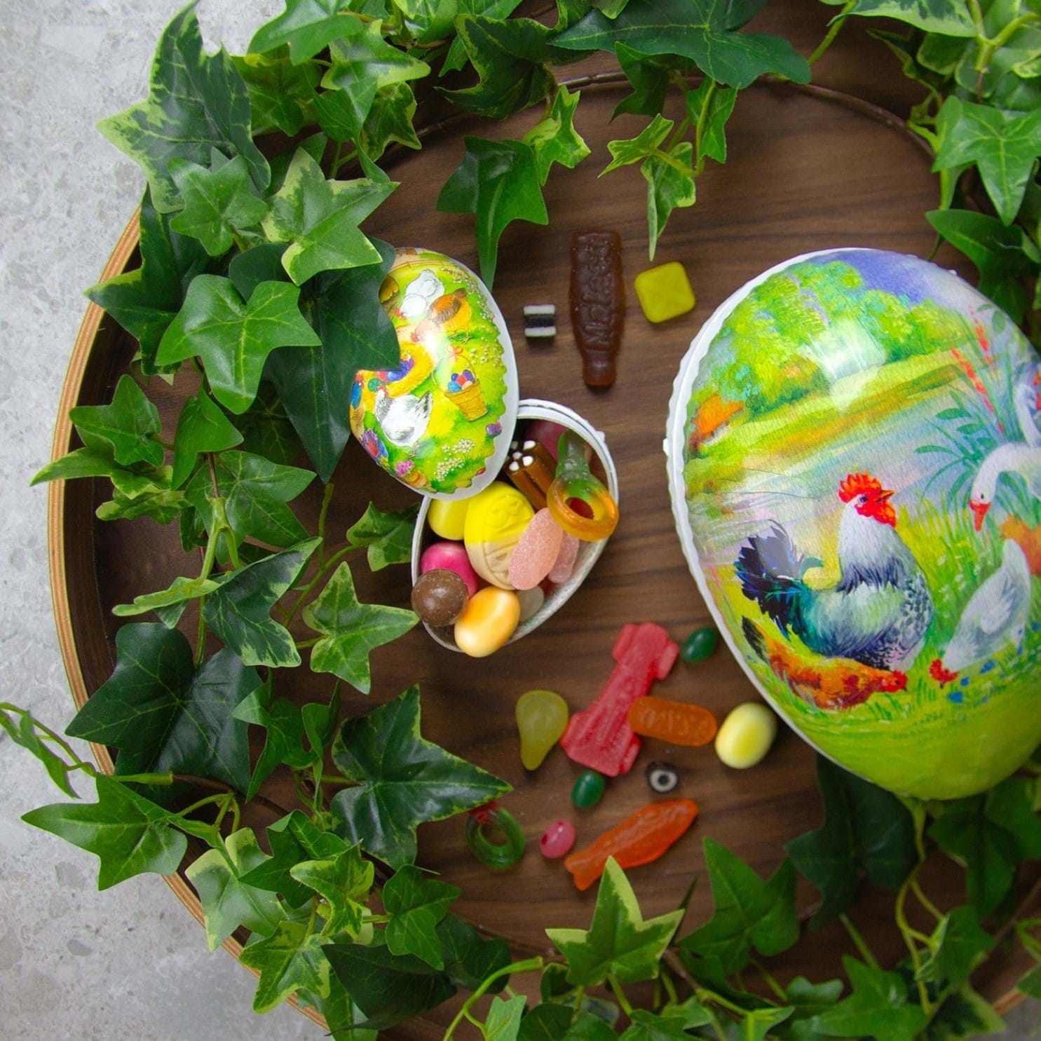 Ett klassiskt påskägg i 18 cm fyllt med godis. En generös och omtyckt påskpresent till personal, kunder och samarbetspartners.