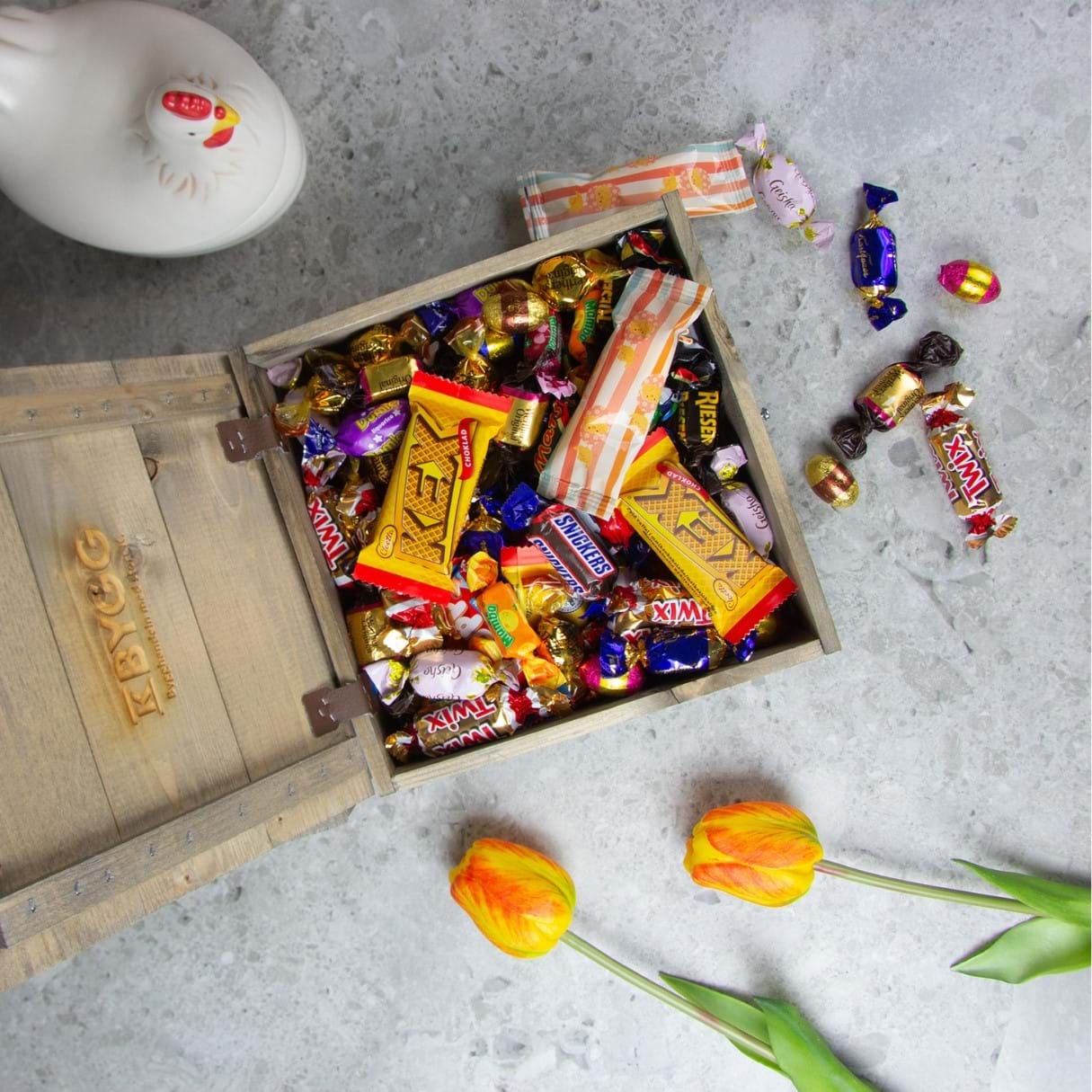 Trälåda med påskgodis i drivved– Mellan, 1500 g