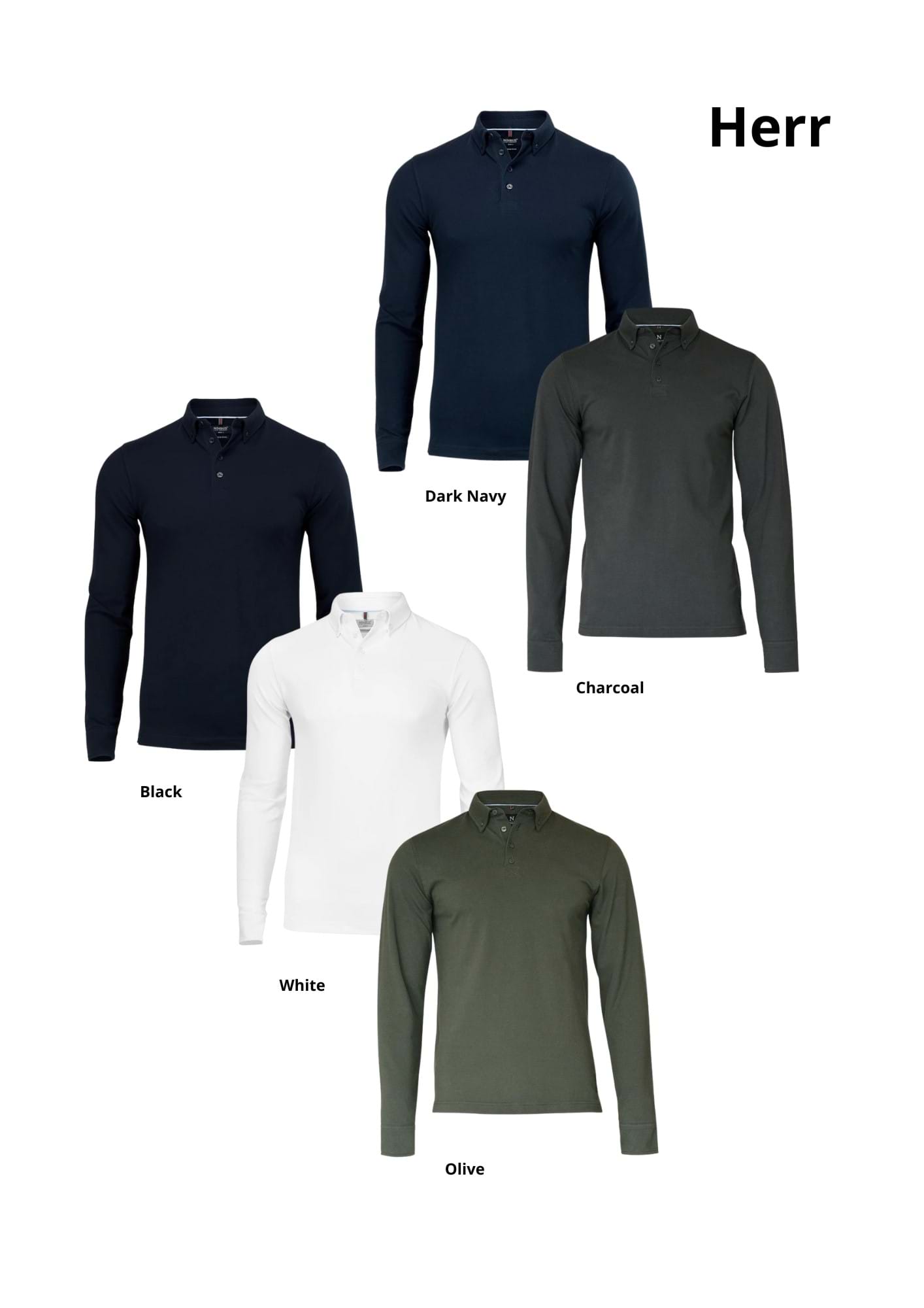 Lång ärm ger en mer dressad stil, som passar perfekt när du letar ett mellanting mellan pike och skjorta. Gjord i komfortabel bomull / lycra kvalité, och med de många eleganta detaljerna såsom button down krage och skjort detaljer i ärmslutet, får den en exklusiv touch.