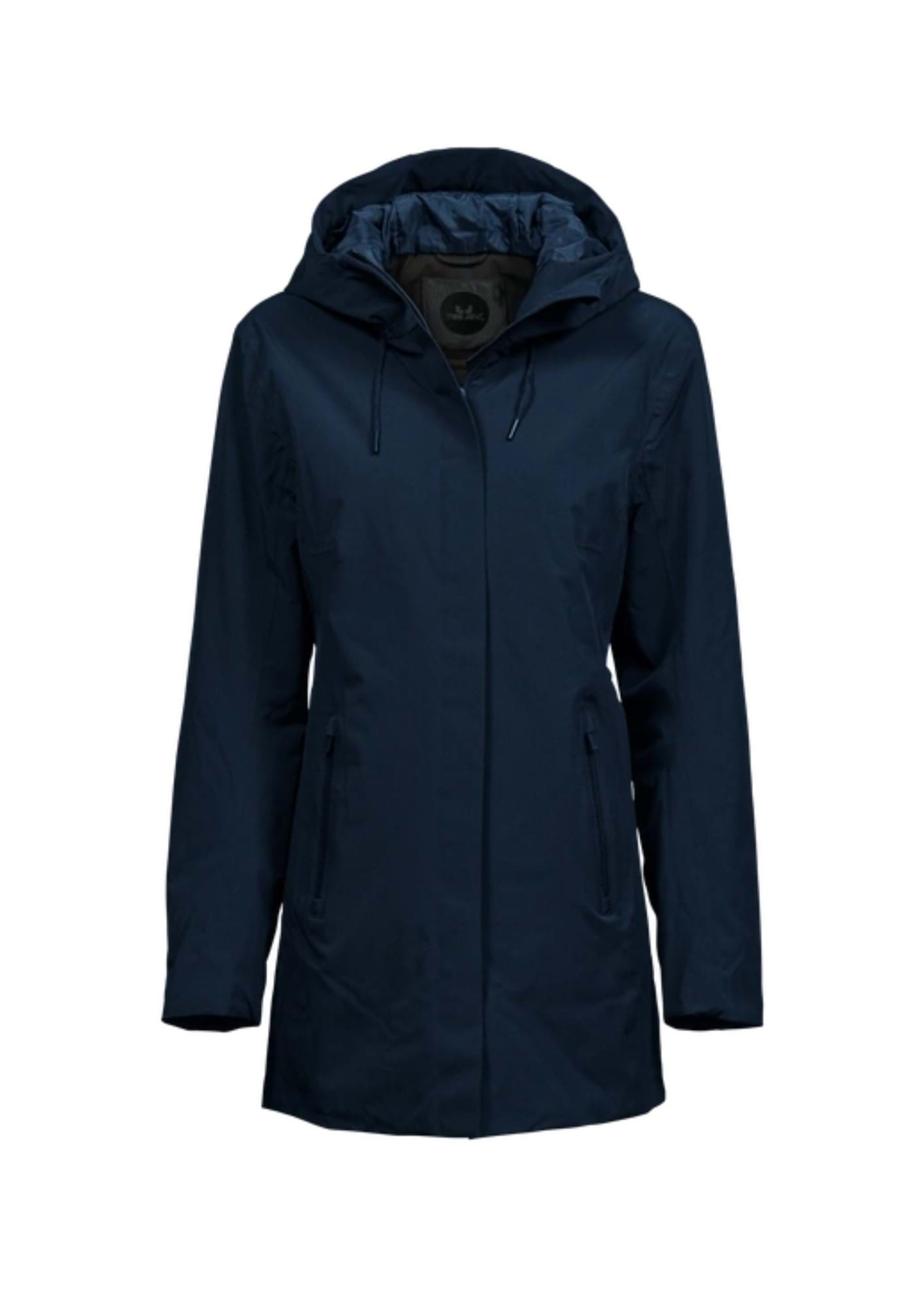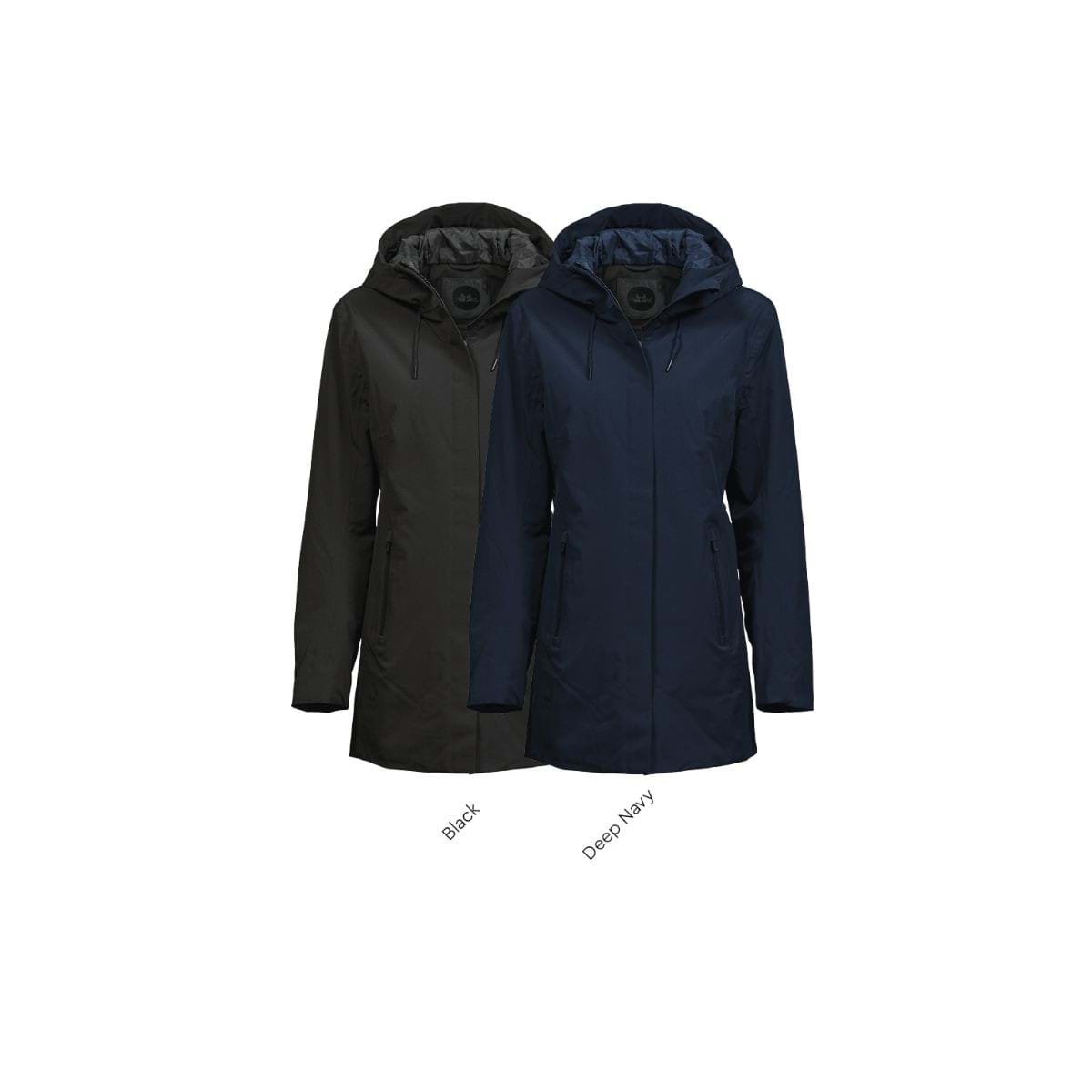 Mångsidig damjacka i sportig elegant klassiskt design. Längden på jackan är mitten lår. Den är tillverkad i ett stretchigt och vattentätt material, fodrad med en högkvalitativt Dupont™ padding. Jackan har en väl anpassad fast huva, varmfodrade framfickor. Den praktiska 2-vägsdragkedjan ligger dold under knappslån, med magnetisk stängning. Vi tycker att denna bekväma jacka är det självklara valet för affärskvinnan.