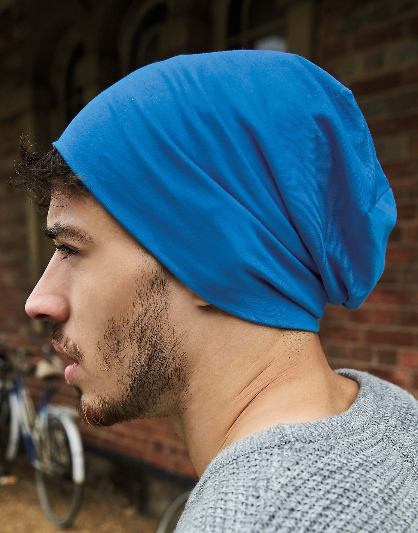 Tätstickad mössa i bomull med detaljsömmar i slouch stil.