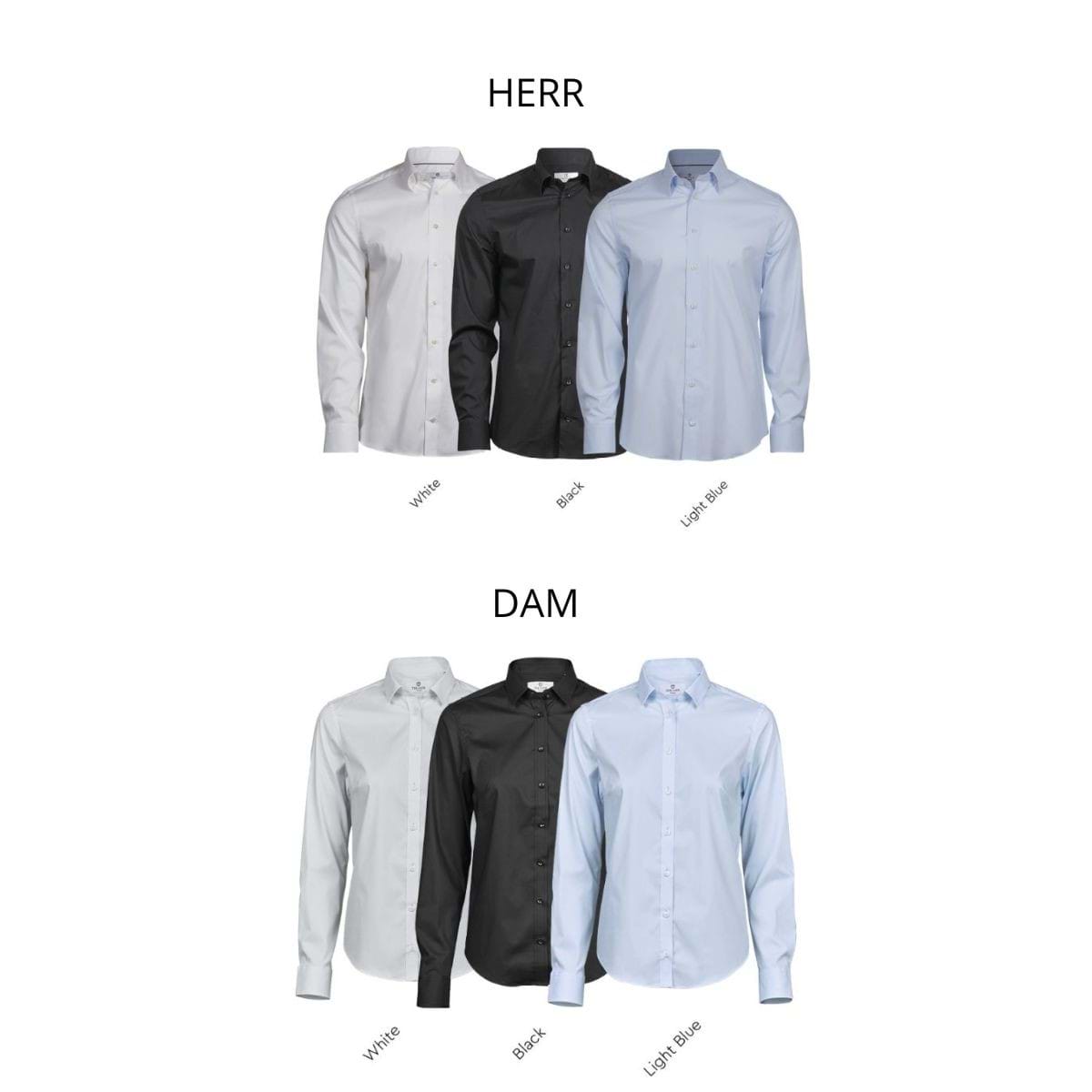 Skjorta i slim fit med stretch för total komfort. Krage med dold knappknäppning och två knappar på manschetterna.