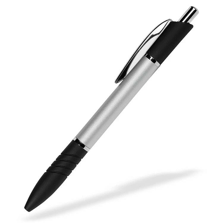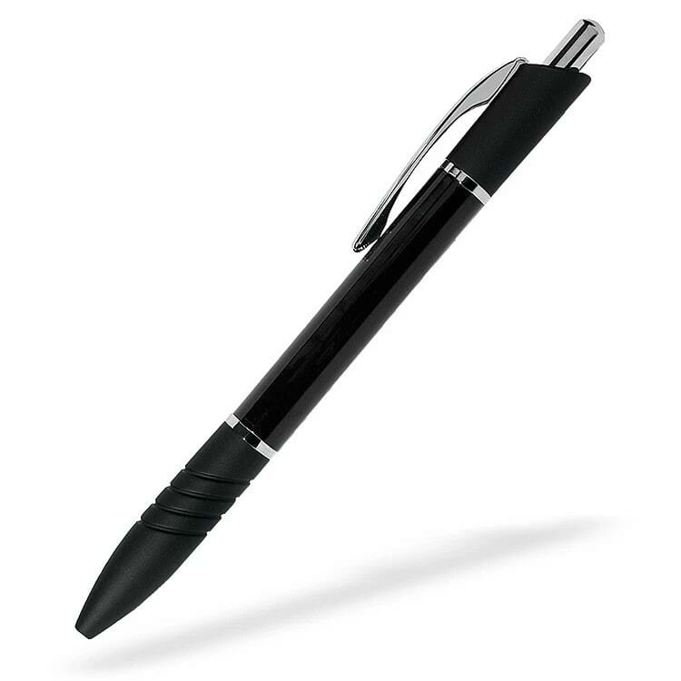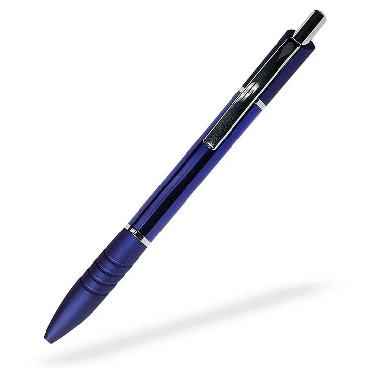 Levereras med metalljumbopatron och blått bläck. Klips, tryckknapp och distansringar i chrome.